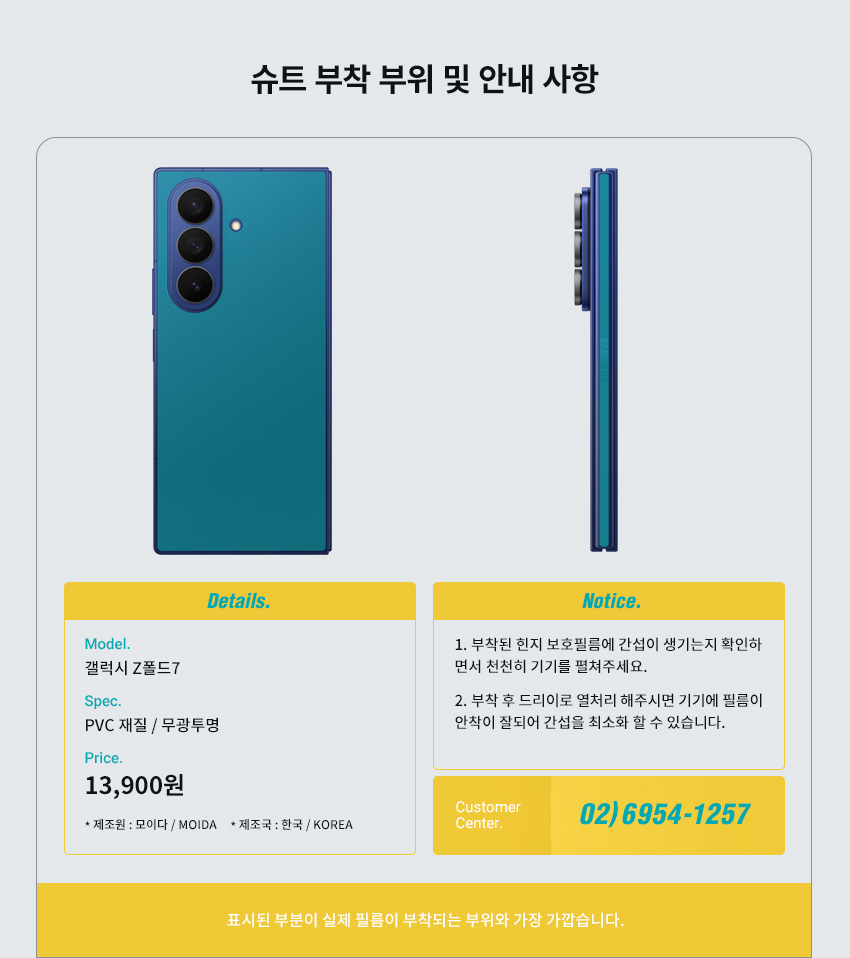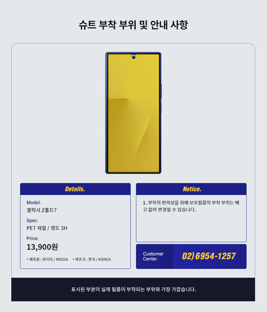 | 품명 및 모델명 | 갤럭시 Z폴드7 전면 올레포빅+내부 플렉시블+서피스(힌지/후면) 2종 세트 각 2매 / UT260112 | ||