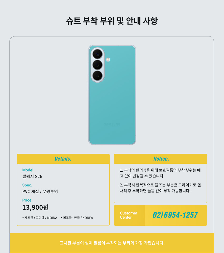 | 품명 및 모델명 | 갤럭시S26 블루라이트 차단 2매+후면 서피스 보호필름 2매 / UT260147 | ||